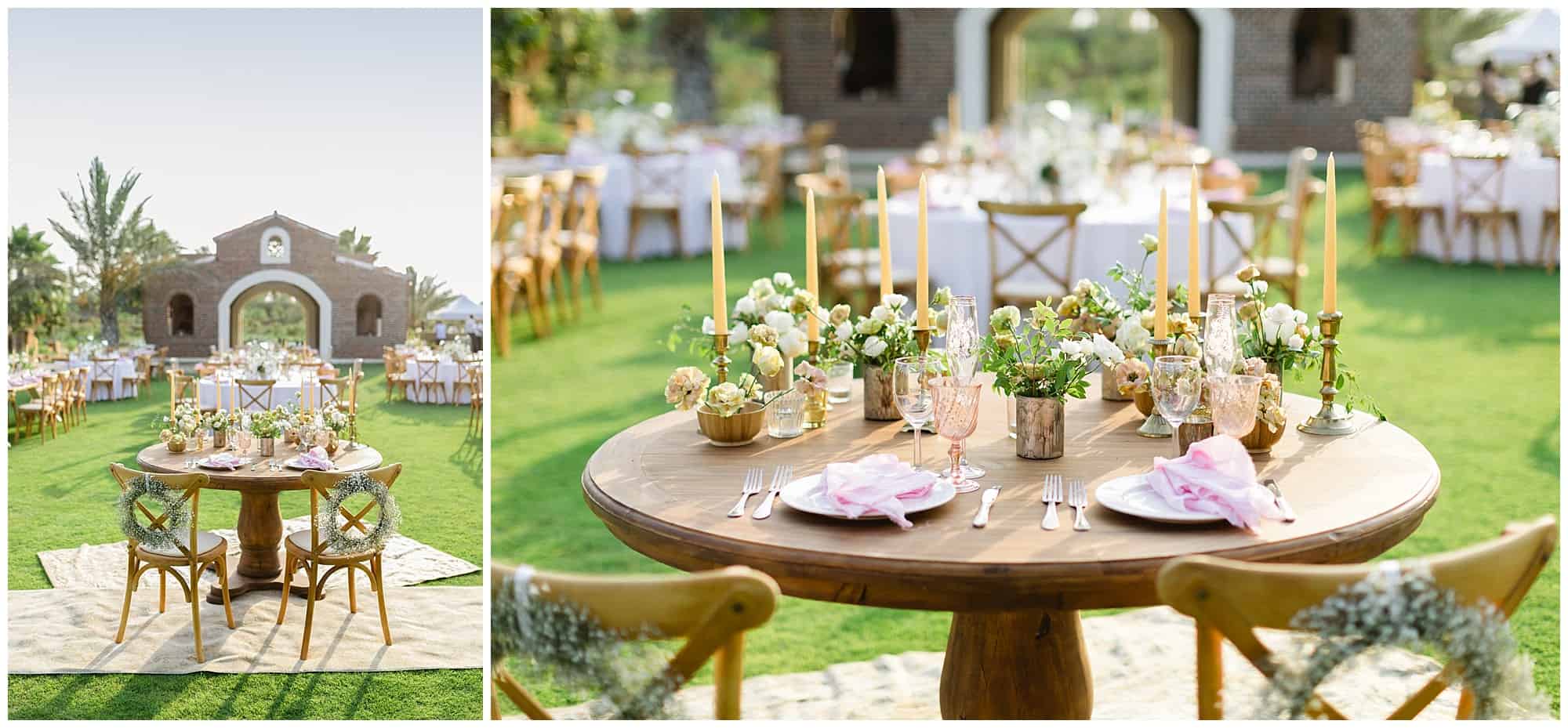 Because we live in California, having a wedding coordinator was essential! Vari, our coordinator did a great job of capturing my vision and making it all come to life! She worked directly with the venue and helped me pick the perfect florist, DJ, violinist and photographer. Everything was planned perfectly — from the rehearsal dinner (at Flora Farms, of course!) to the wedding day. I truly couldn’t have asked for a more seamless and perfect day! One of my favorite parts of the wedding was this magnificent circle piece crafted out of baby’s-breath that we got married in front of. I have never seen anything like it. It was truly breathtaking!