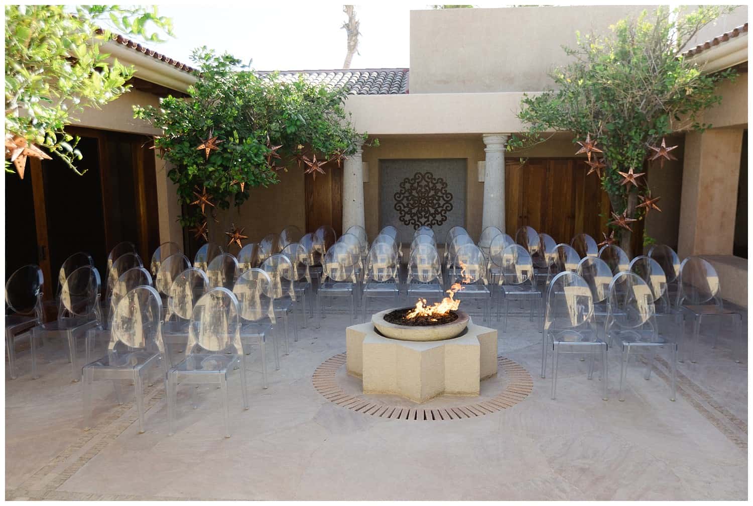 “Ten years before our wedding day, I took a family vacation to Las Ventanas and one evening, walked to a high point in the resort. As the sun set, the fire pits came alive and the tiny hanging blown glass hearts that always hang from the trees in Cabo looked as if they glowed from within. I watched my parents, happily married for, at the time, 25 years, embrace. (They celebrated their 35th wedding anniversary while we were in Cabo!) I snapped a photo, knowing I wanted to find that kind of love someday.