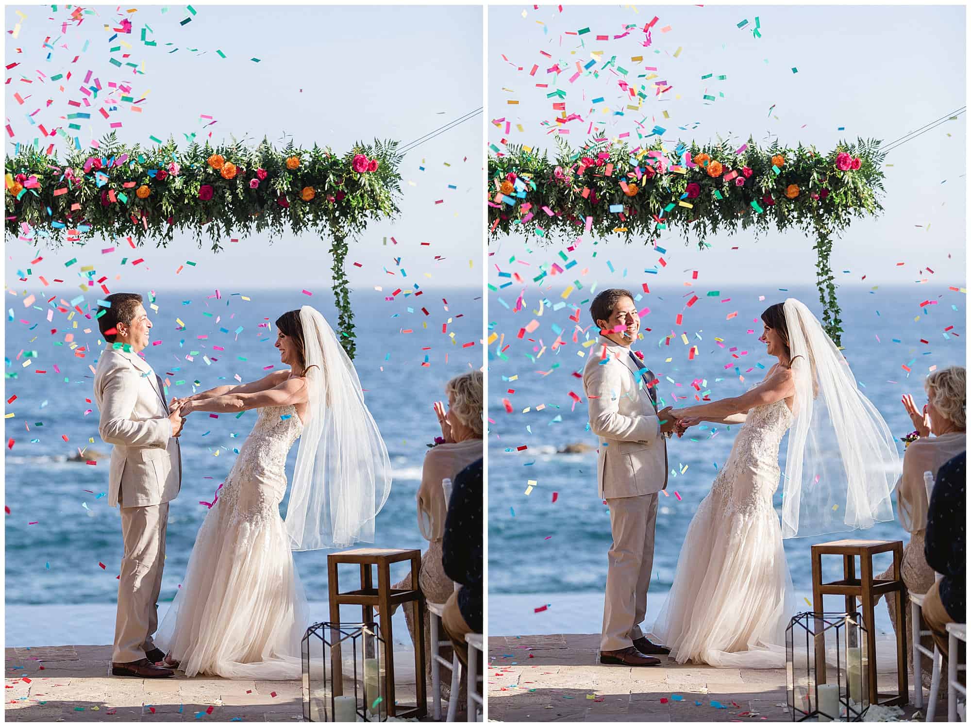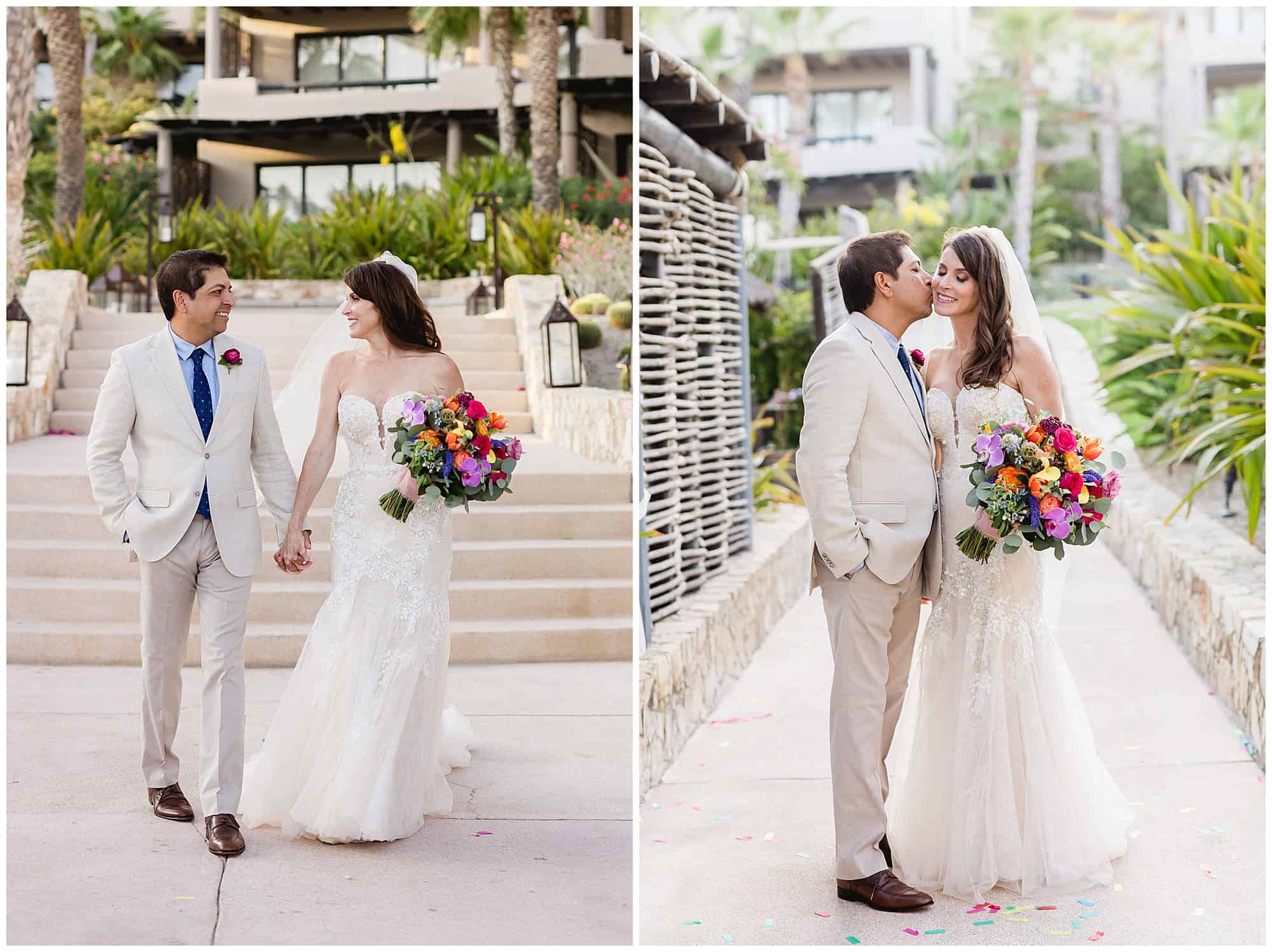 My husband is a big fan of Cabo. He had been there 17 times before we met, and took me for my first time two months after our first date. A year later he proposed in Cabo, so it was an obvious location to come back the following year for our wedding with 80 of our family and friends. We chose to have our beautiful Cabo Wedding at Esperanza Resort. The hotel staff and our wedding planners were so warm and easy to work with. No surprise that their recommendation on photographers – Sara and Ramon – would be top notch.